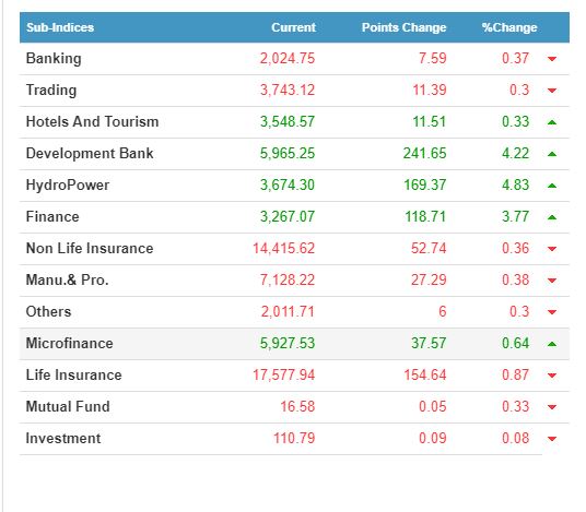 कूल १३ उपसमूहमध्ये ८ कम्पनीको सेयरमूल्य घटेको छ भने बाँकी ५ कम्पनीको सेयरमूल्य बढेको छ । आज हाइड्रोपावर र विकास बैंक समूहमा लगानीकर्ता आकर्षित भएका छन् ।
